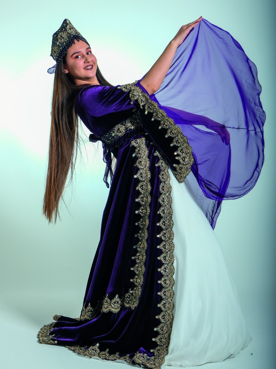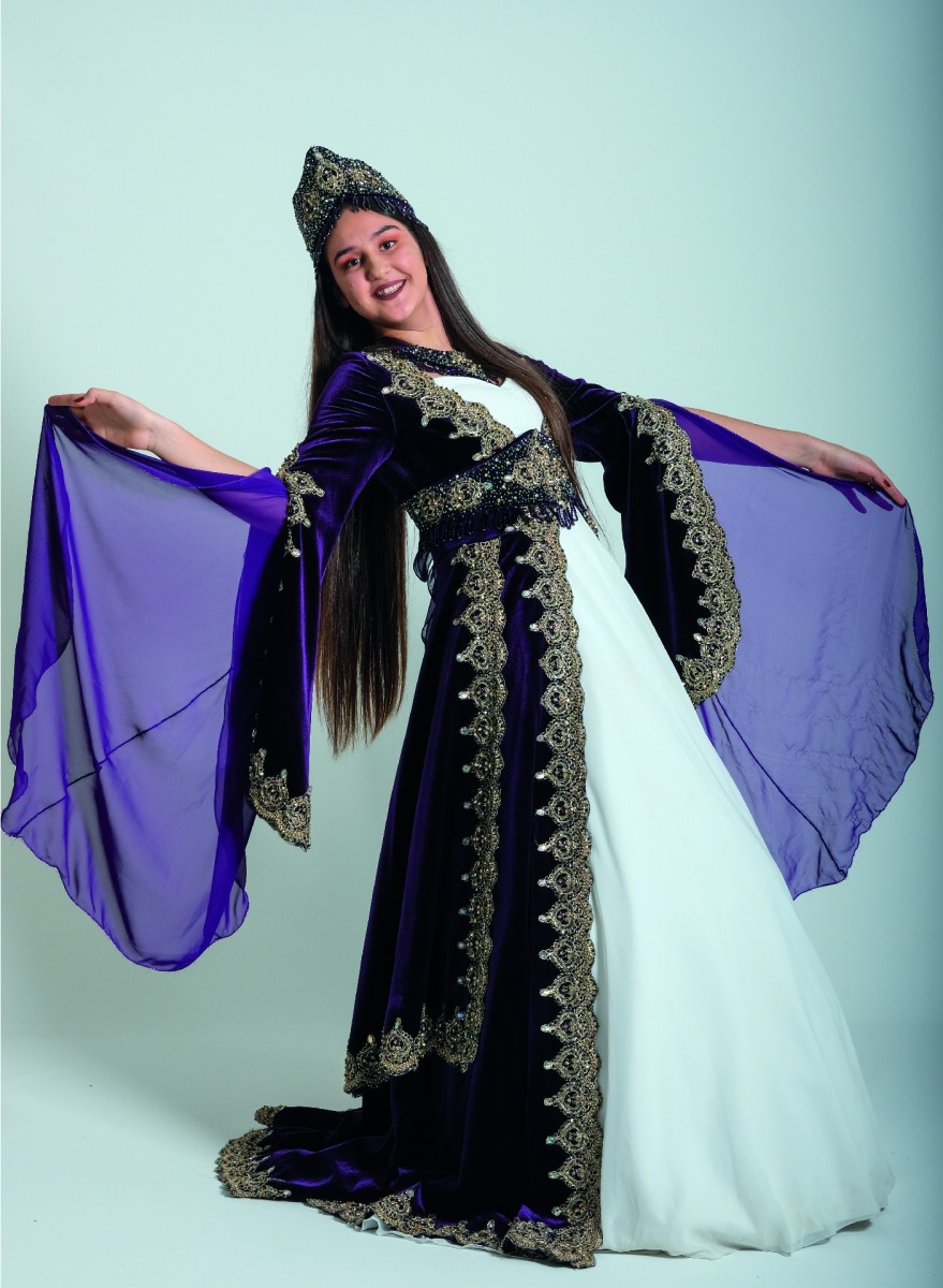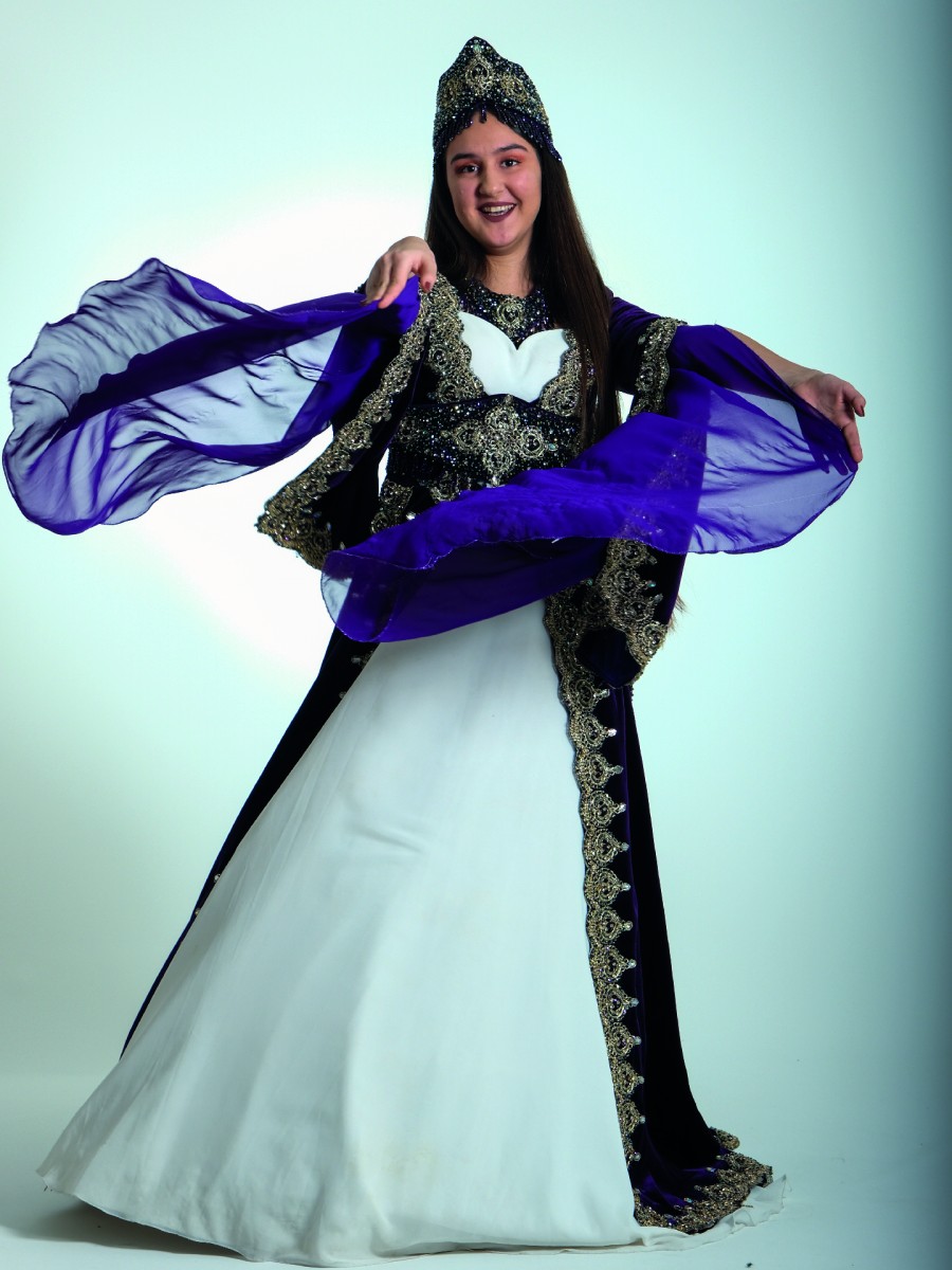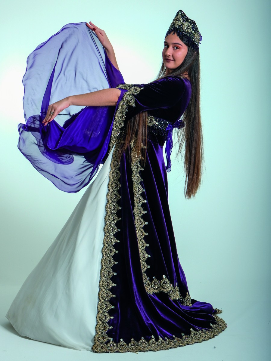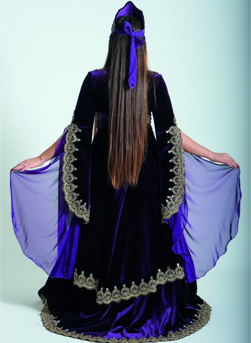 Altın nakışlı ve etek ucu çift duvaklıdır.