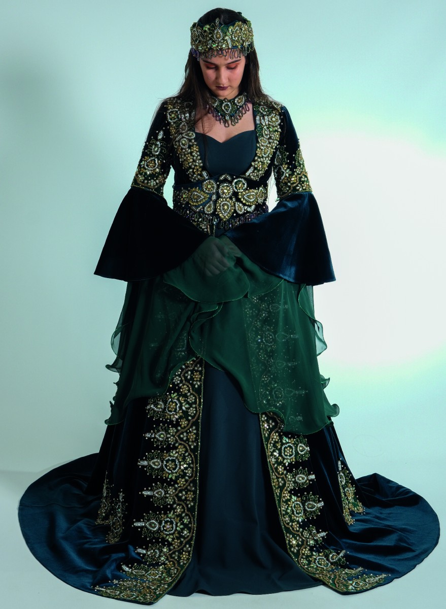 Altın nakışlı, bol işlemelidir.